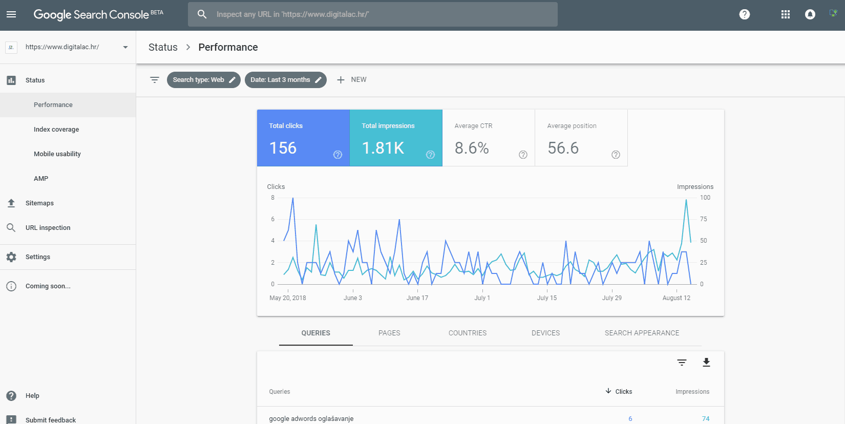 Pratite izvedbu vašeg weba u rezultatima Google pretraživanja: